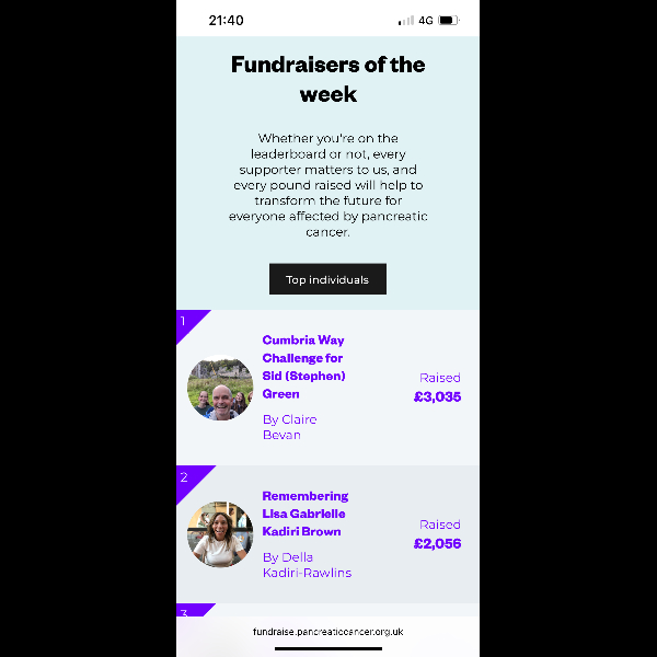 I'm fundraising for Pancreatic Cancer UK.